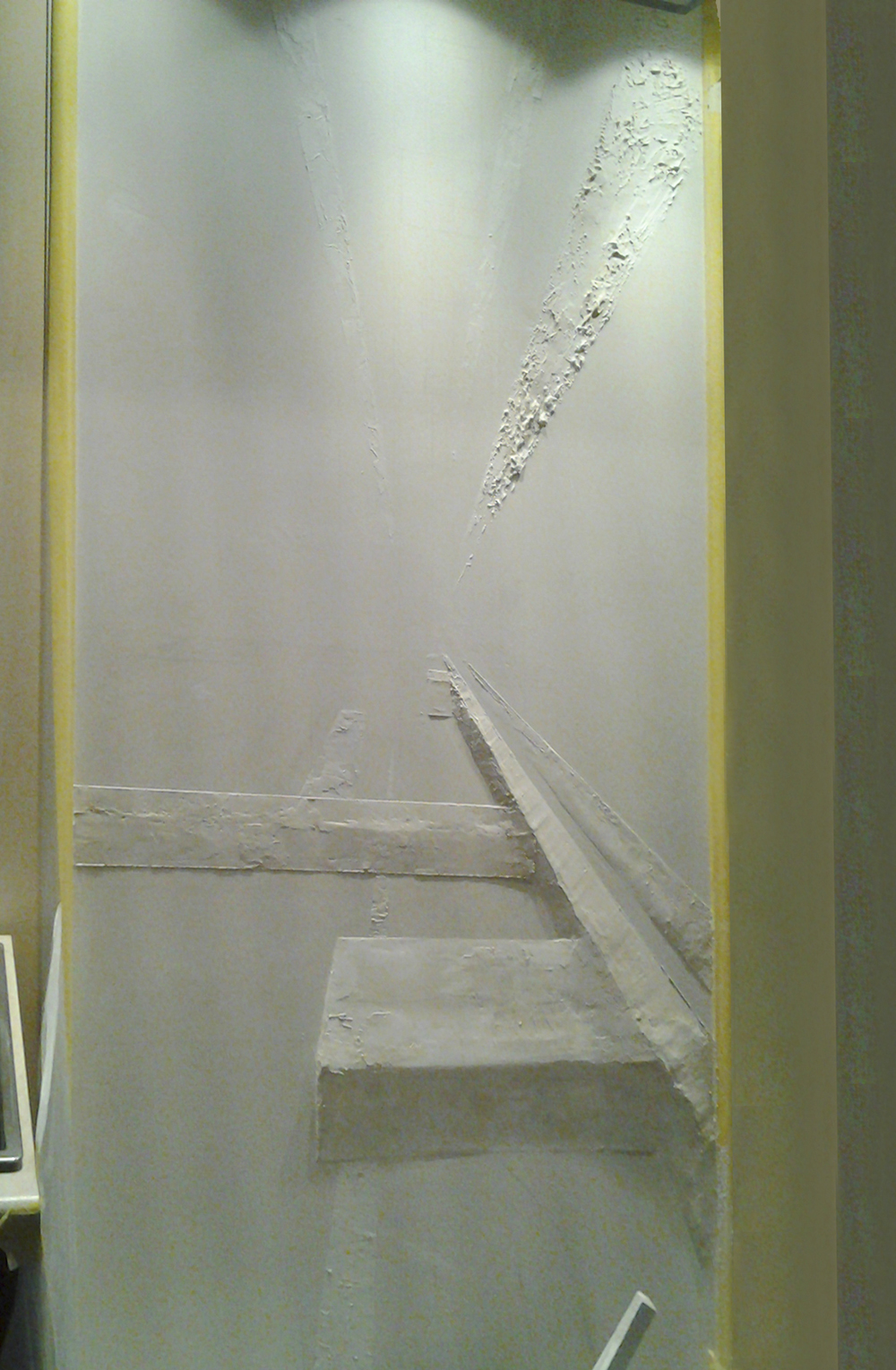 Художественное изображение графической (геометрической) абстракции в кухне-студии стиля хай тек. Все цвета индивидуально подбирались для создания эскиза, а потом написания самой картины на стене. Учитывалось соответствие цветовых пятен интерьера с изображением и проработка насыщенности и света в картине. Использовался гипс для графического барельефа. Другими словами, создавалась 3d картина на стене. Размеры: 2 метра на 1 метр, а визуальное впечатление очень сильное при том, что картина не забирает на себя все внимание, а гармонично декорирует внутреннее пространство помещения.  Видима хорошо перспектива, которая визуально расширяет интерьер. Современная графика придает положительный статус хозяевам как минимум по одной из множества причин: НЕОБЫЧНОСТЬ  на Одесском и даже Украинском пространстве художественных изображений. Выход за рамки привычного изобразительного оформления квартир и домов. Европа перешла этот рубеж во второй половине ХХ ст., но мы все еще стремимся не только догнать, но и понять современный АРТ. Эта метафизика сверхприродного поднимает на философскую идею геометрических фигур, а значит запредельного мира, где мы как люди все же можем и должны наполнить смыслом виртуальный мир своего творения. Это нас облагораживает осознанностью, интеллектуальным подвигом и выходом за рамки стереотипов. Всегда рады расширить с Вами мир !!!