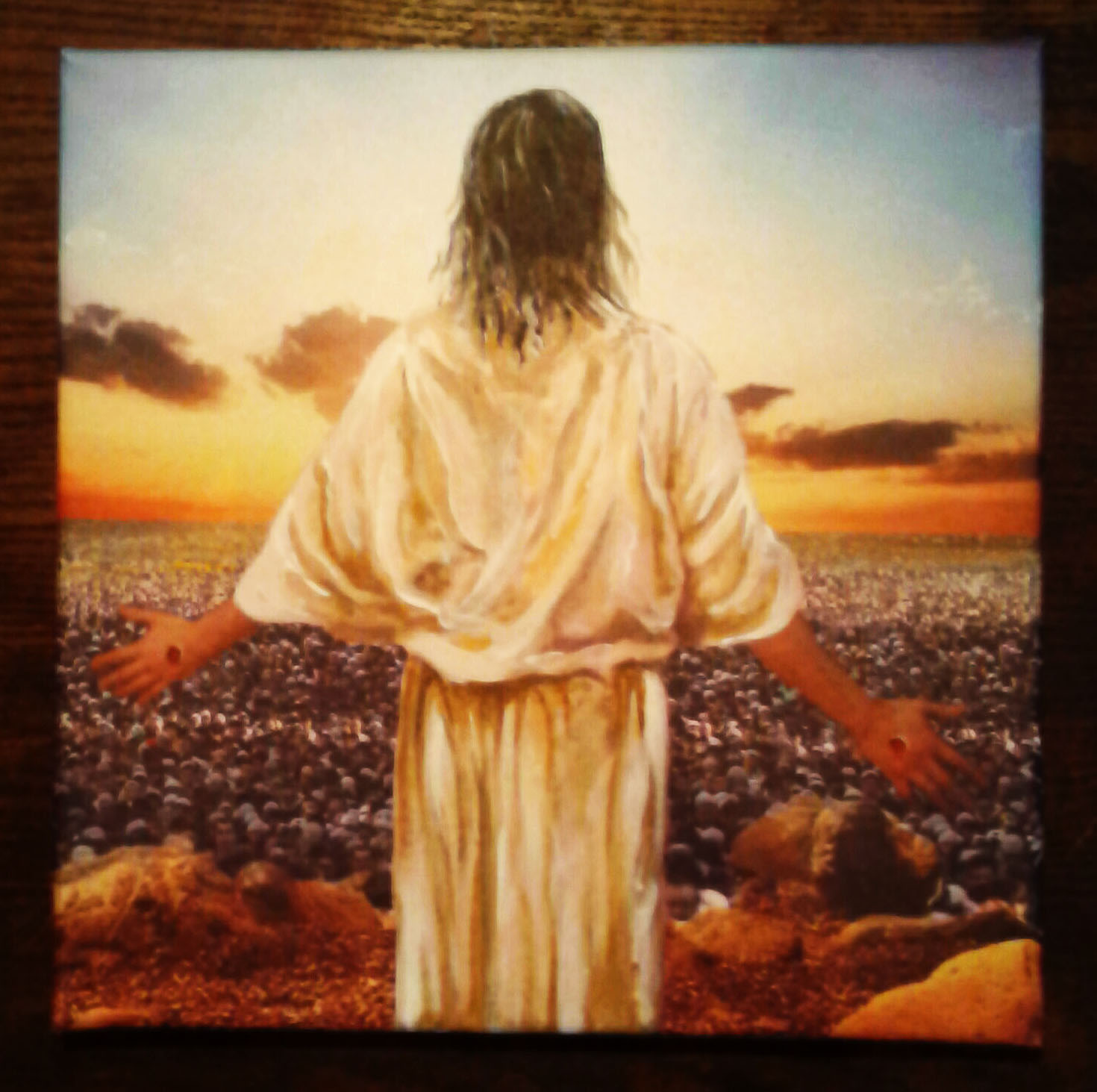 Вашему вниманию представлена картина, которая была заказана церковным деятелем. Образы на картине вполне понятны — это Иисус Христос благословляет бесчисленное количество людей, которые имитируют море, стоя на возвышенности как на берегу. Объясняет эту картину золотой стих из библии: «Ибо так возлюбил Бог мир, что отдал Сына Своего Единородного, дабы всякий верующий в Него, не погиб, но имел жизнь вечную» (Иоан.3:16).